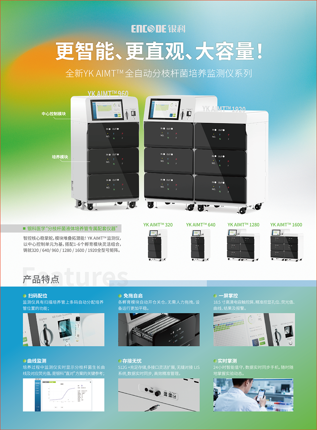 银科医学长期专注结核病实验室诊断领域,以液体快培免磨菌“直对”微孔板药敏方案为核心,打造更高效、更精准的检测体系。此次中标产品隶属于公司新近推出的全自动分枝杆菌培养监测仪系列,该系列采用模块化堆叠架构设计,形成YK AIMT 320、640、960、1280、1600及1920六个型号,能够灵活匹配不同标本量规模的医疗机构需求。同时,系统配套开发专用APP,支持远程数据查看与结果管理,操作人员无需进入实验室即可通过手机实时掌握检测进程与结果,实现智能化、数字化管理,属国际首创。